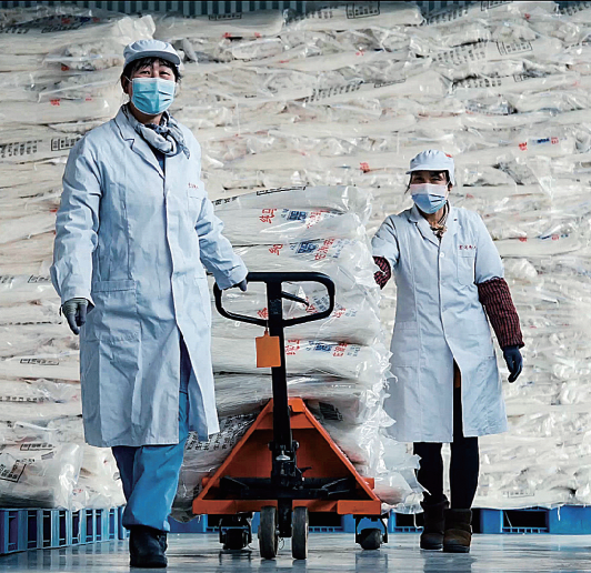 工人搬运包装的马铃薯粉条