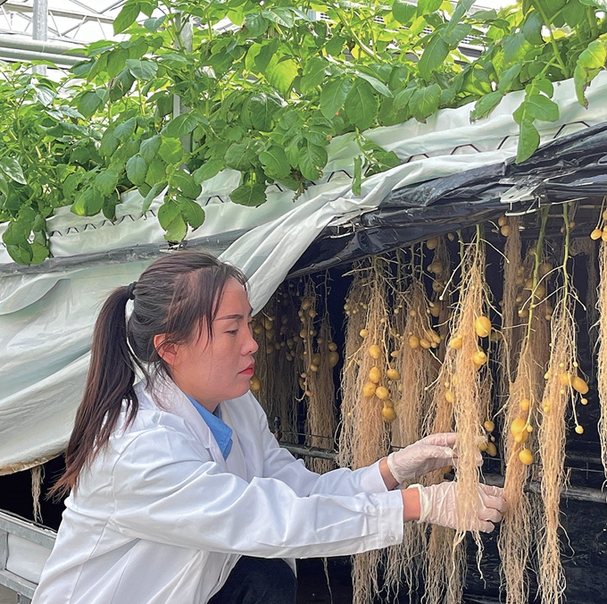 农技人员观察马铃薯原原种长势